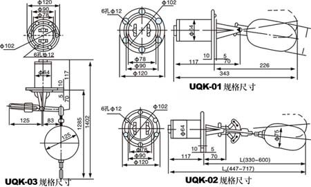 UQK型浮球液位控制器適用于工業(yè)生產(chǎn)過程中敞開或承壓容器內(nèi)液位的控制。當(dāng)液位到達(dá)高低極限時,控制器觸點(diǎn)可作為信號報(bào)警裝置或電動泵、電磁閥等電器的開關(guān)。