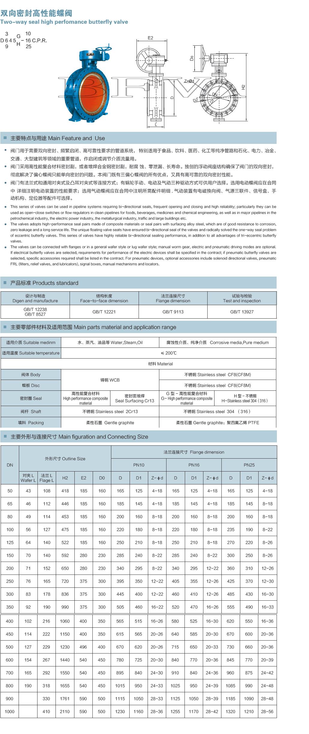 法蘭式雙向密封高性能蝶閥D345H